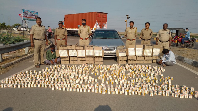 పల్లెవెలుగు వెబ్, కర్నూలు: రాష్ట్ర సరిహద్దు పంచలింగాల చెక్ పోస్టు వద్ద సెబ్, సివిల్ పోలీసుల తనిఖీలో భారీగా కర్ణాటక మద్యం పట్టుకున్నారు. వివరాలిలా ఉన్నాయి. ఎస్పీ డా. ఫక్కీరప్ప, సెబ్ ఏఎస్పీ గౌతమి సాలి ఆదేశాల మేరకు సెబ్, లోకల్ పోలీసులు పంచలింగాల చెక్ పోస్టు వద్ద వాహనాలను తనిఖీ చేశారు. ఇందులో భాగంగా తెలంగాణ వైపు నుండి వస్తున్న MH 03 S 4159 Honda Accord కారు ను ఆపి తనిఖీ చేయగా వెల్దుర్తి మండలం,బొమ్మిరెడ్డి పల్లె గ్రామానికి చెందిన బోయ పామయ్య (35) మరియు బోయ ఏళ్ళప్ప లు కర్ణాటక రాష్ట్రం,రాయచూరు నుండి 38 కేసుల మద్యం కొనుగోలు చేసి, అలంపూర్ వైపు నుండి కర్నూలుకు తరలిస్తున్నారు. రూ.లక్షా 40వేలు విలువ చేసే 3848 హై వార్డ్స్ చీర్స్ విష్కి టెట్రా పాకెట్స్ , కారు ను స్వాధీనం చేసుకున్నారు. ఇద్దరి ముద్దాయిలను అరెస్టు చేసి తాలూకా పోలీస్ స్టేషన్లో అప్పగించారు. ఈ దాడుల్లో SEB ఇన్స్పెక్టర్ రవిచంద్ర, SI శివ ప్రసాద్ మరియు హెడ్ కానిస్టేబుల్ ఖాజా, షరీఫ్ , నాయక్ , గోపాల్, SPO సుందర్ పాల్గొన్నారు.